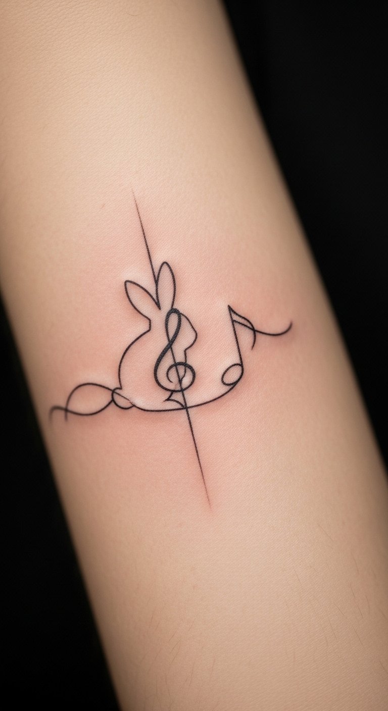 The musical notes represent the transformative power of music in one’s life, while the bunny silhouette embodies playfulness and authenticity.