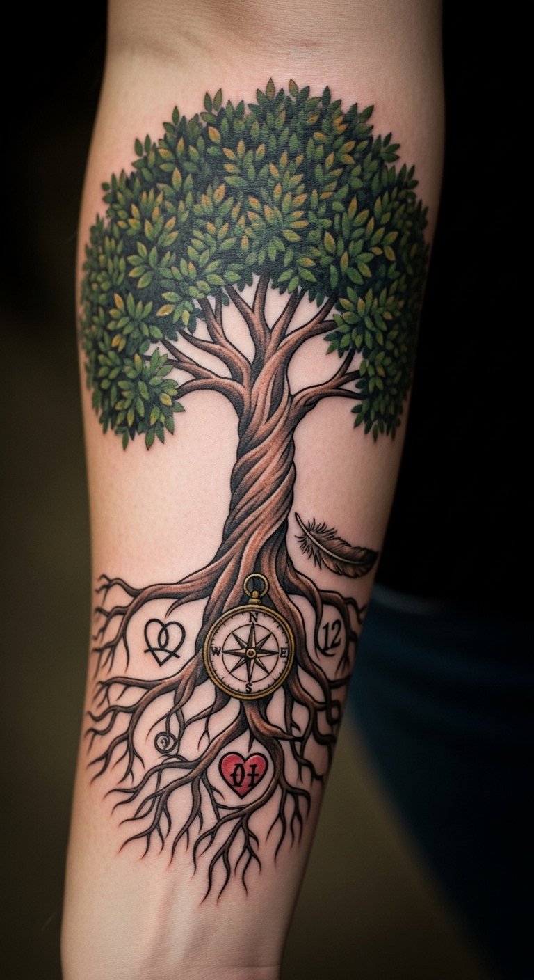 This tattoo concept symbolizes the deep connection to one’s heritage and personal journey. The roots represent strength and stability, while the branches signify freedom and growth as they reach outward.