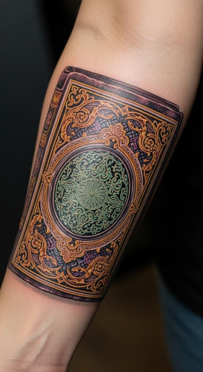 Placed on the forearm, it serves as a visible reminder of one’s love for literature and the endless journeys that reading inspires. The design flows organically with the contours of the arm, making it a personal and expressive piece that resonates with those who cherish the written word.