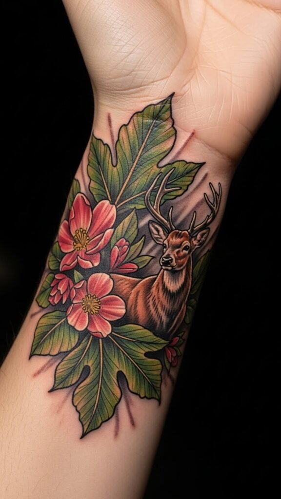 This tattoo symbolizes a deep connection to nature and personal growth, reflecting the wearer’s individuality and creativity.