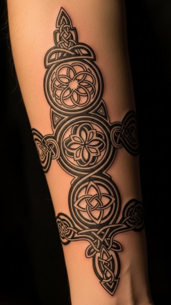 These Celtic knot tattoos symbolize eternity and interconnectedness, making them a profound choice for those who appreciate deep meanings in their body art.