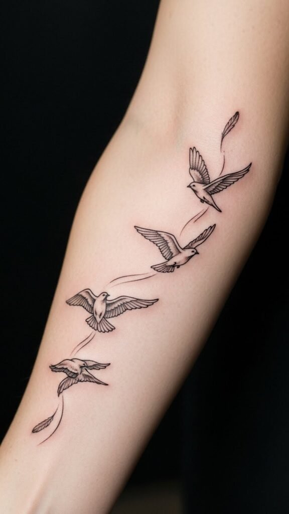 This tattoo design captures the essence of freedom and self-discovery, with the birds representing the desire to break boundaries and chase aspirations.