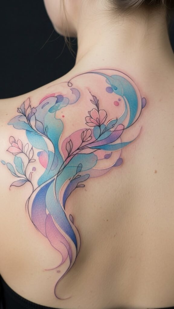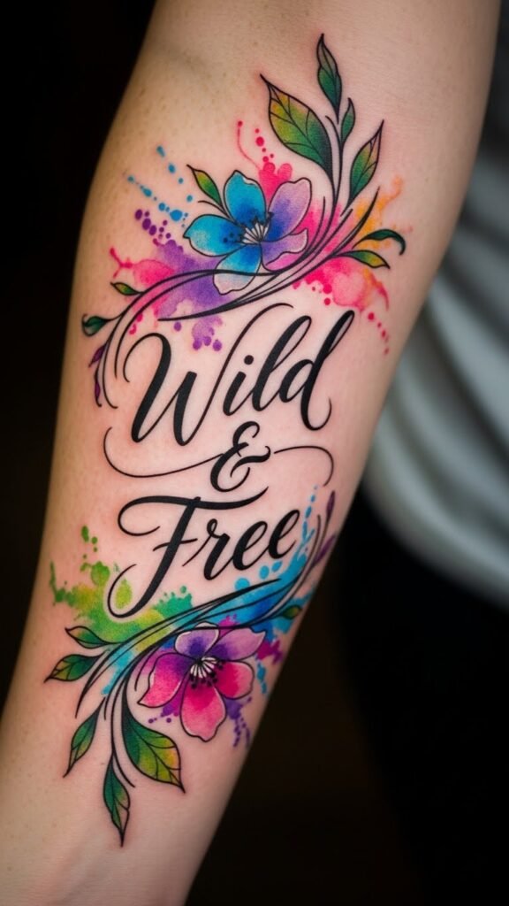 This tattoo symbolizes freedom and self-expression, embodying the wearer’s inner spirit through its vibrant hues and organic shapes.