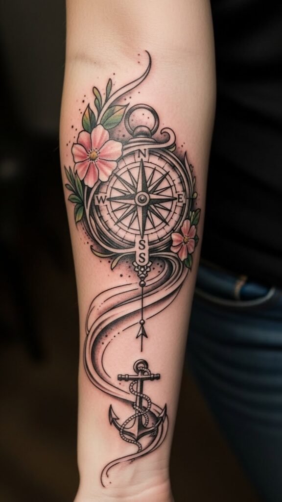 The compass symbolizes direction and the journey of life, while the anchor represents resilience and grounding through struggles.