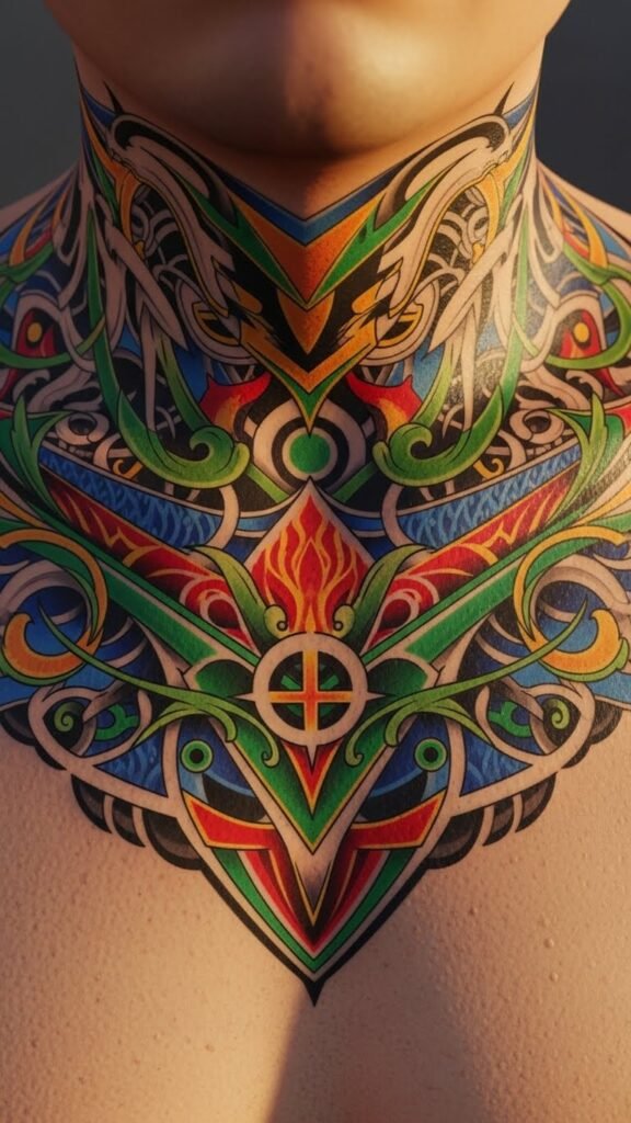 The vibrant colors evoke emotion and energy, creating an empowering statement that celebrates self-expression, making the tattoo not only a work of art but also a testament to the wearer’s story.