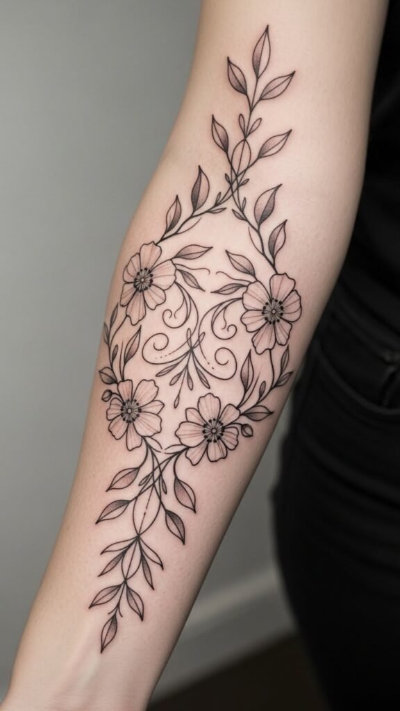 The placement on the forearm allows for visibility and expression, celebrating individuality and femininity. Each intricate detail of the design resonates with personal stories and emotions, making it a meaningful tribute to one’s unique journey.