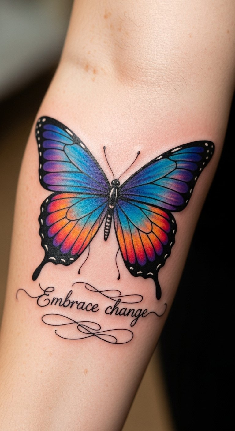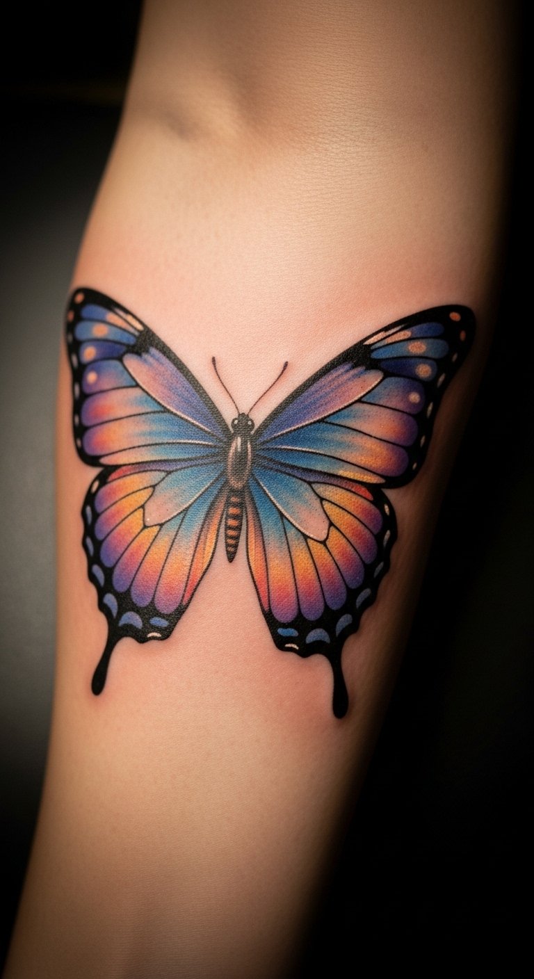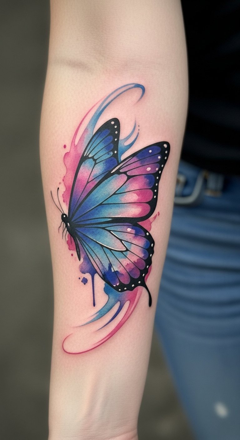This butterfly tattoo symbolizes personal growth and resilience, representing the journey of transformation that many individuals experience in life.
