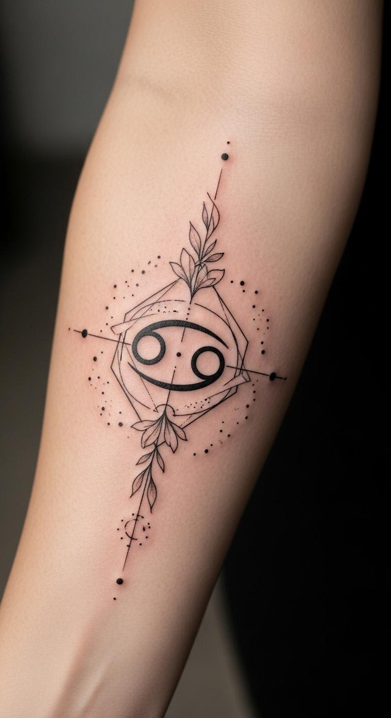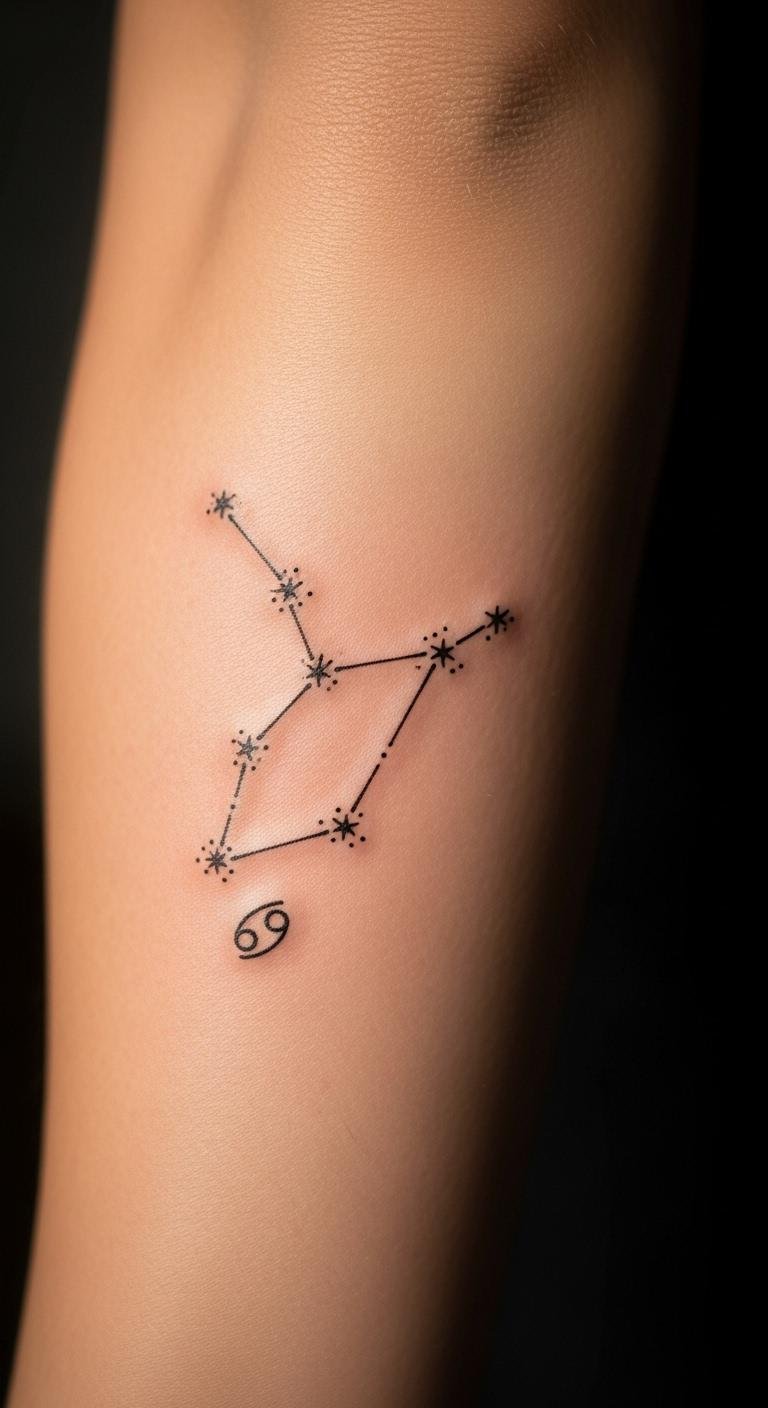 Placed on the forearm, the design remains visible, allowing for a constant reminder of one’s connection to the cosmos and the nurturing traits associated with this water sign.