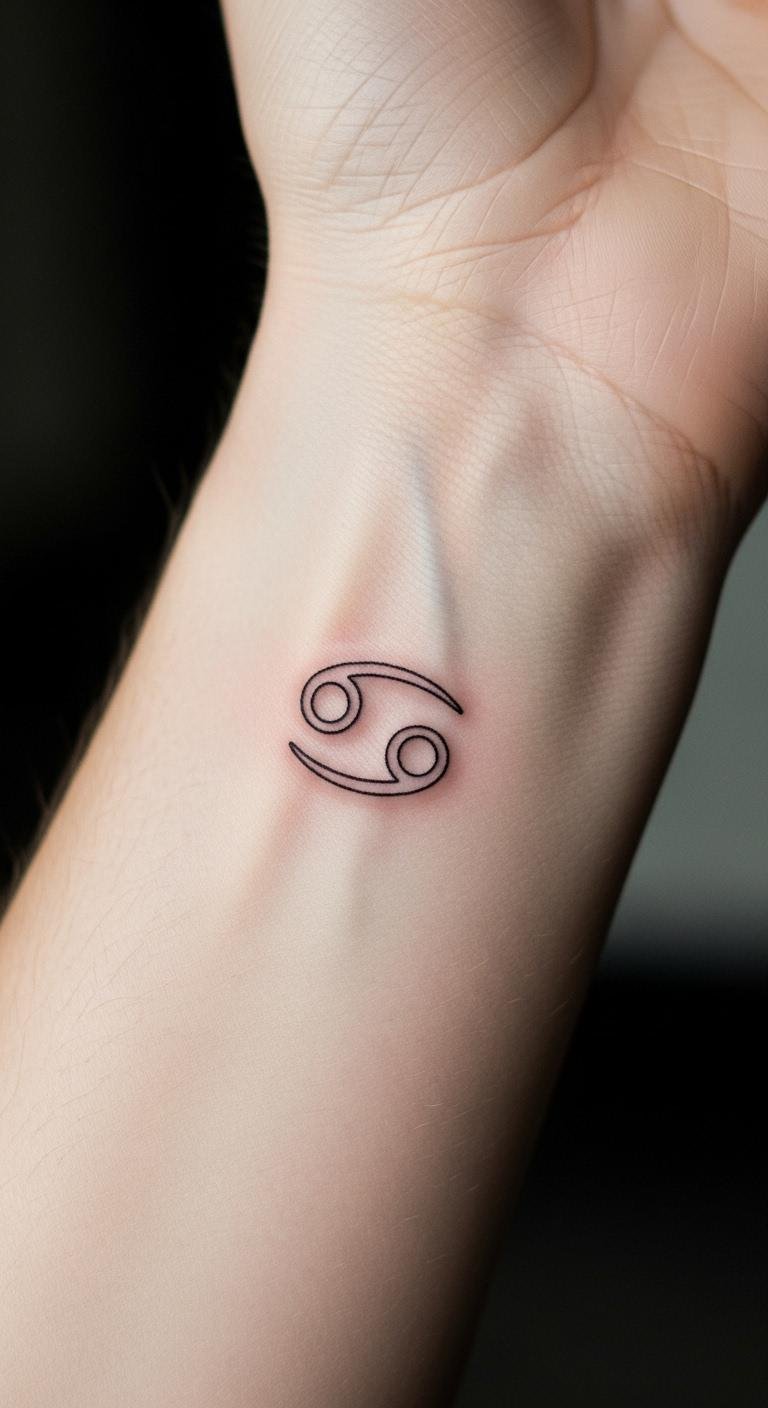This tattoo, placed on the wrist, symbolizes the emotional depth and nurturing spirit inherent to those born under the Cancer sign.