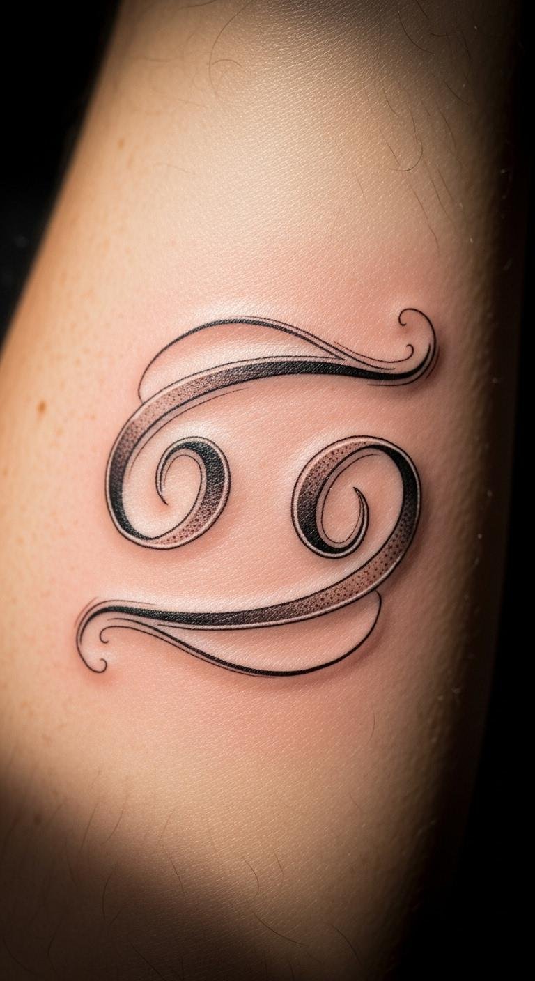 This tattoo serves as a gentle reminder of your Cancer identity, symbolizing emotional depth and intuitive strength.