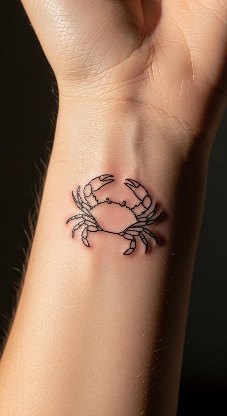 Embodying the essence of Cancer, this small wrist tattoo featuring a crab outline offers a subtle yet profound connection to your zodiac identity.