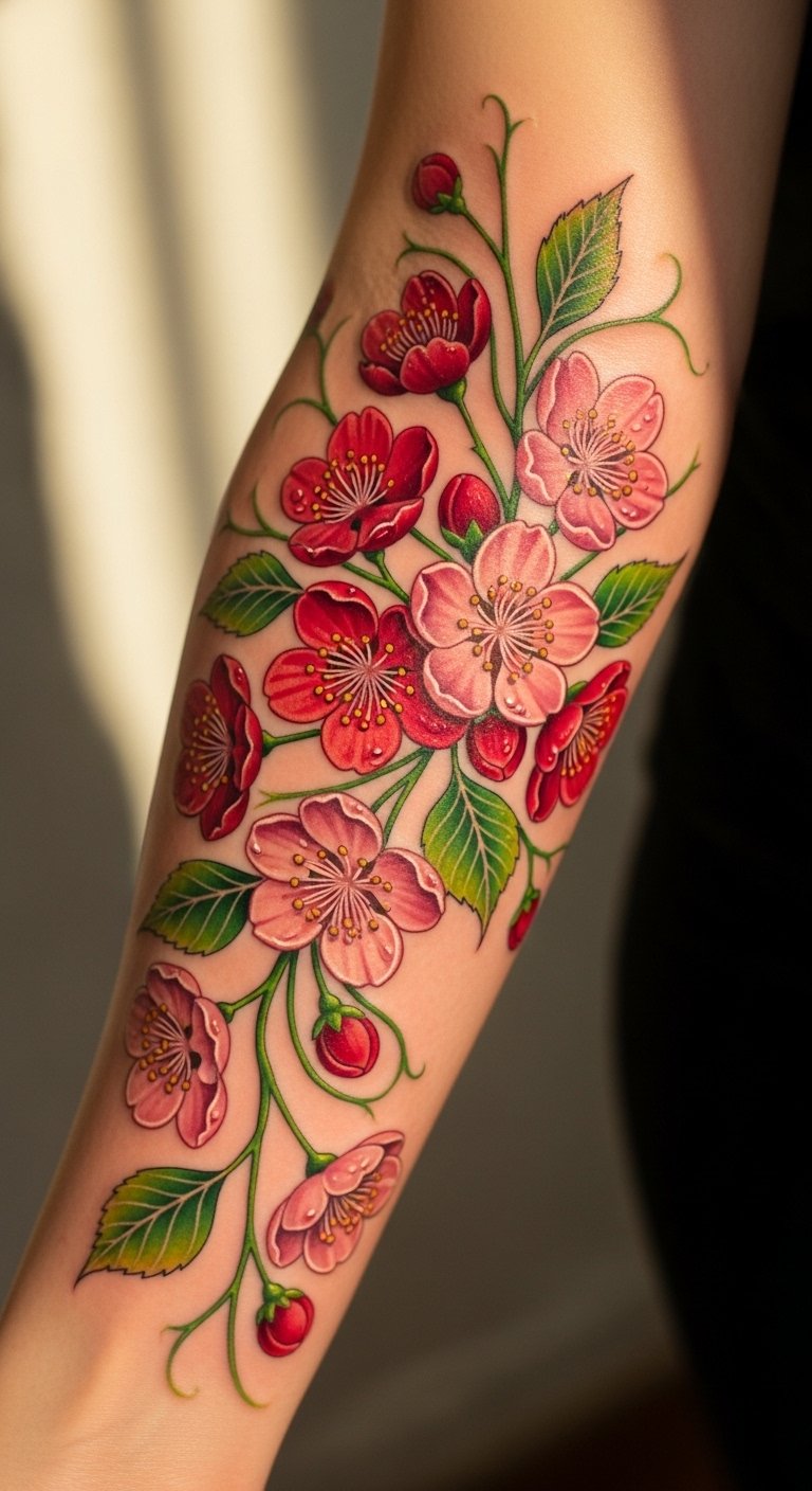 The vibrant colors evoke emotions of vitality and passion, while the cherry’s presence resonates within tattoo communities, inspiring others to embrace change and their unique stories.
