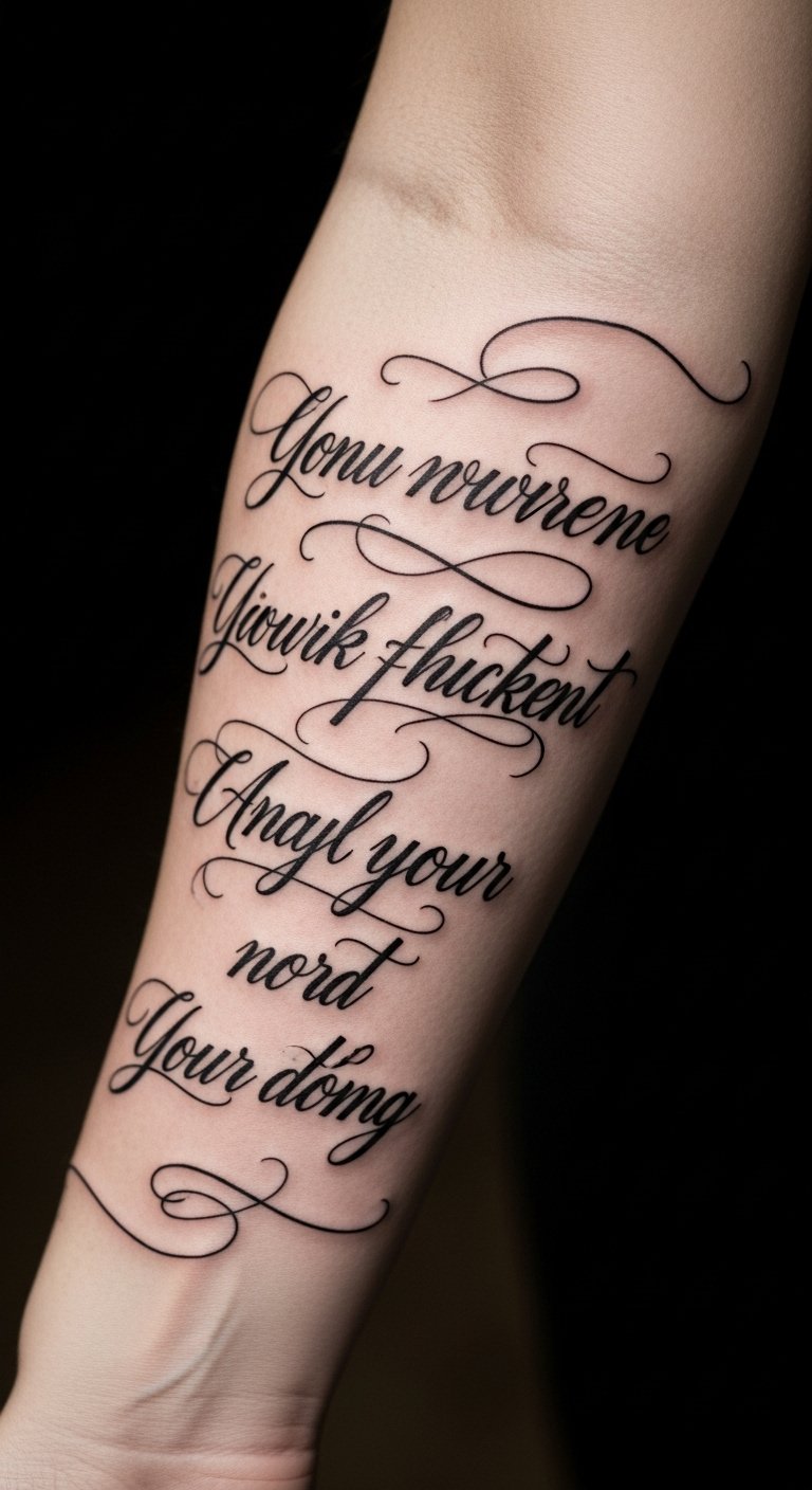 The choice of location allows for a continuous reminder of resilience and growth, visible to both the wearer and others. The flowing script not only symbolizes the stories of battles fought but also serves as an inspiration to those who see it, fostering a sense of empowerment and connection through shared experiences.