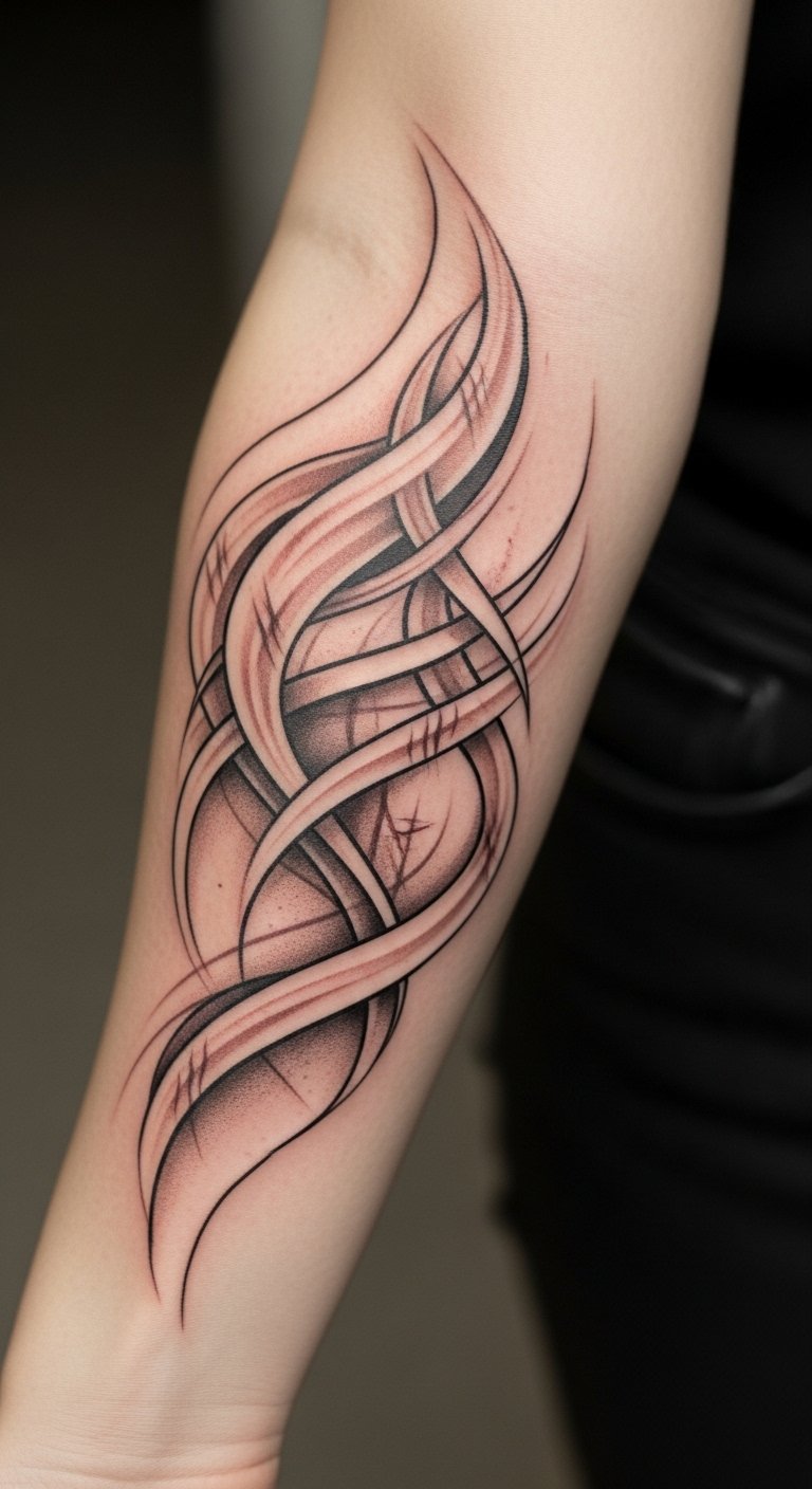 This tattoo design celebrates the beauty of all body shapes by incorporating fluid lines that embrace the unique contours of the forearm.