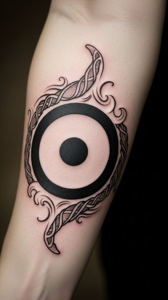 This tattoo symbolizes unity and completeness, reflecting the cyclical nature of life and the interconnectedness of all things.