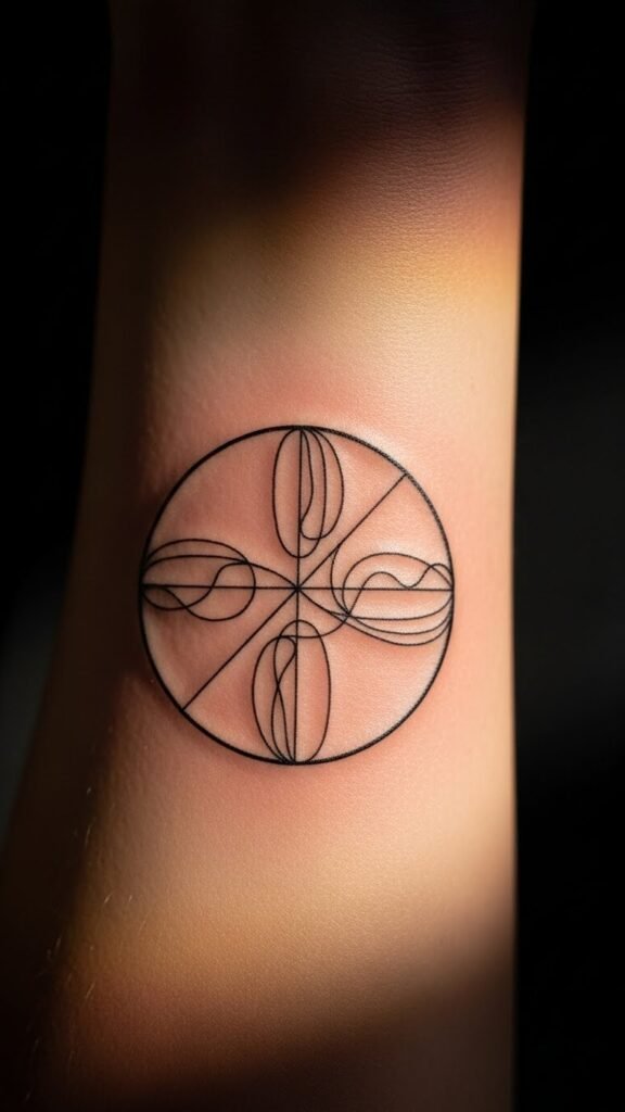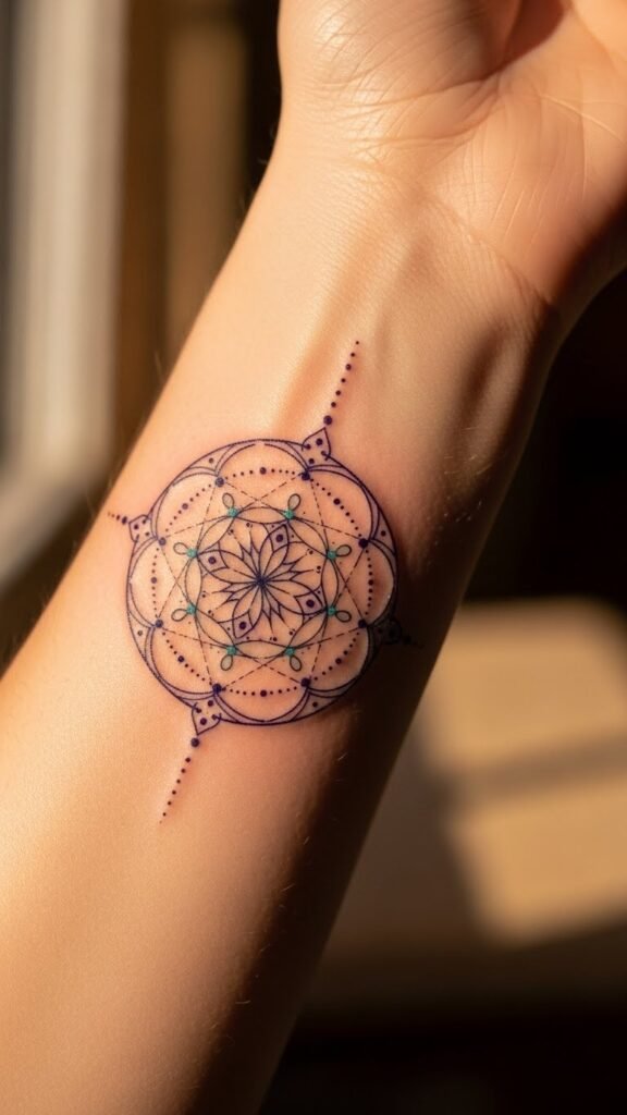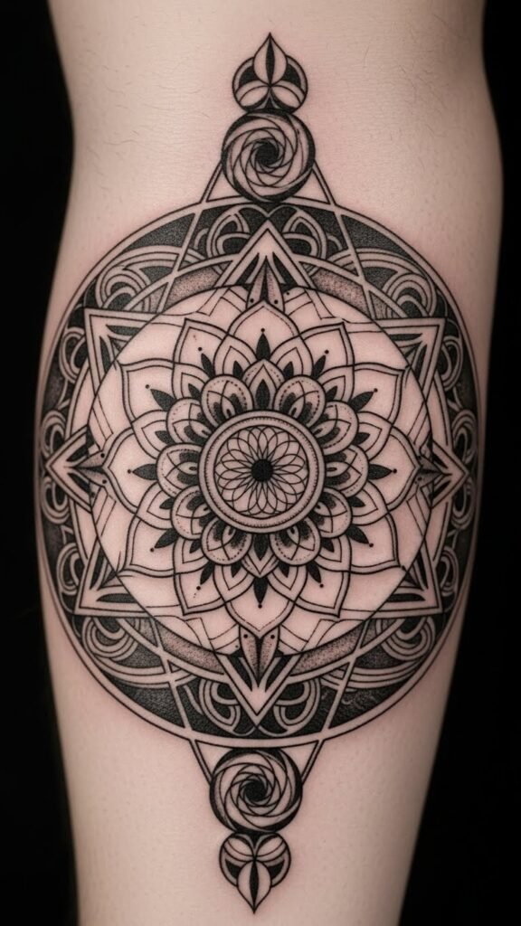 This circular tattoo symbolizes balance and harmony, resonating with the wearer’s journey towards inner peace.