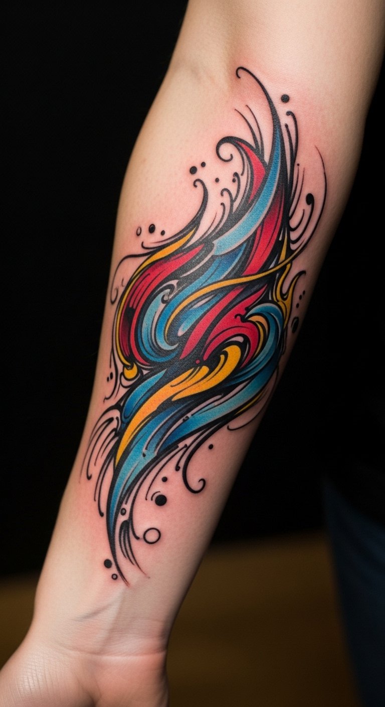 Positioned on the forearm, it serves as a constant reminder of one’s unique story and creative expression. The layered elements reflect resilience and the beauty of change, inviting onlookers to appreciate the artistry and depth behind the ink.
