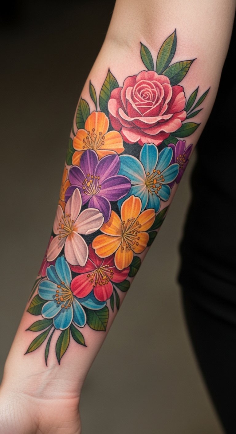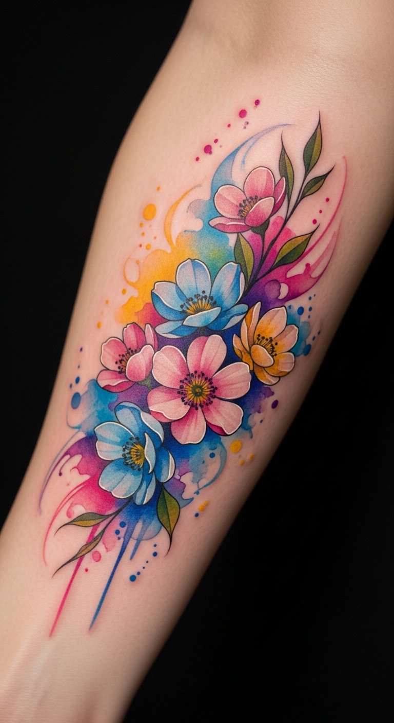 This tattoo embodies the journey of transformation, where each flower represents a new chapter in life, turning past regrets into a celebration of individuality.