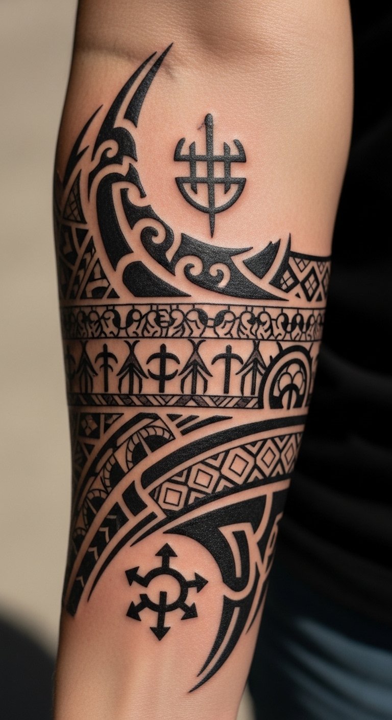 Positioned on the forearm, this tattoo remains visible, inviting admiration and conversation, allowing the wearer to share their personal narrative and celebrate their roots with every glance.