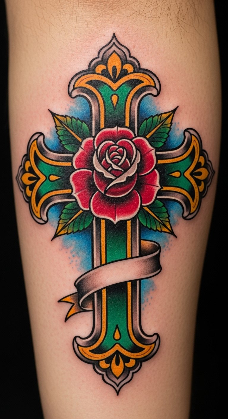 Bold Neo-Traditional Cross Tattoo