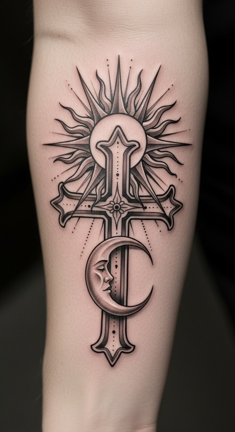 Cross With Sun and Moon