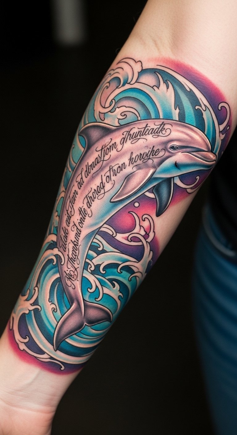 Dolphin and Script Tattoo Combinations