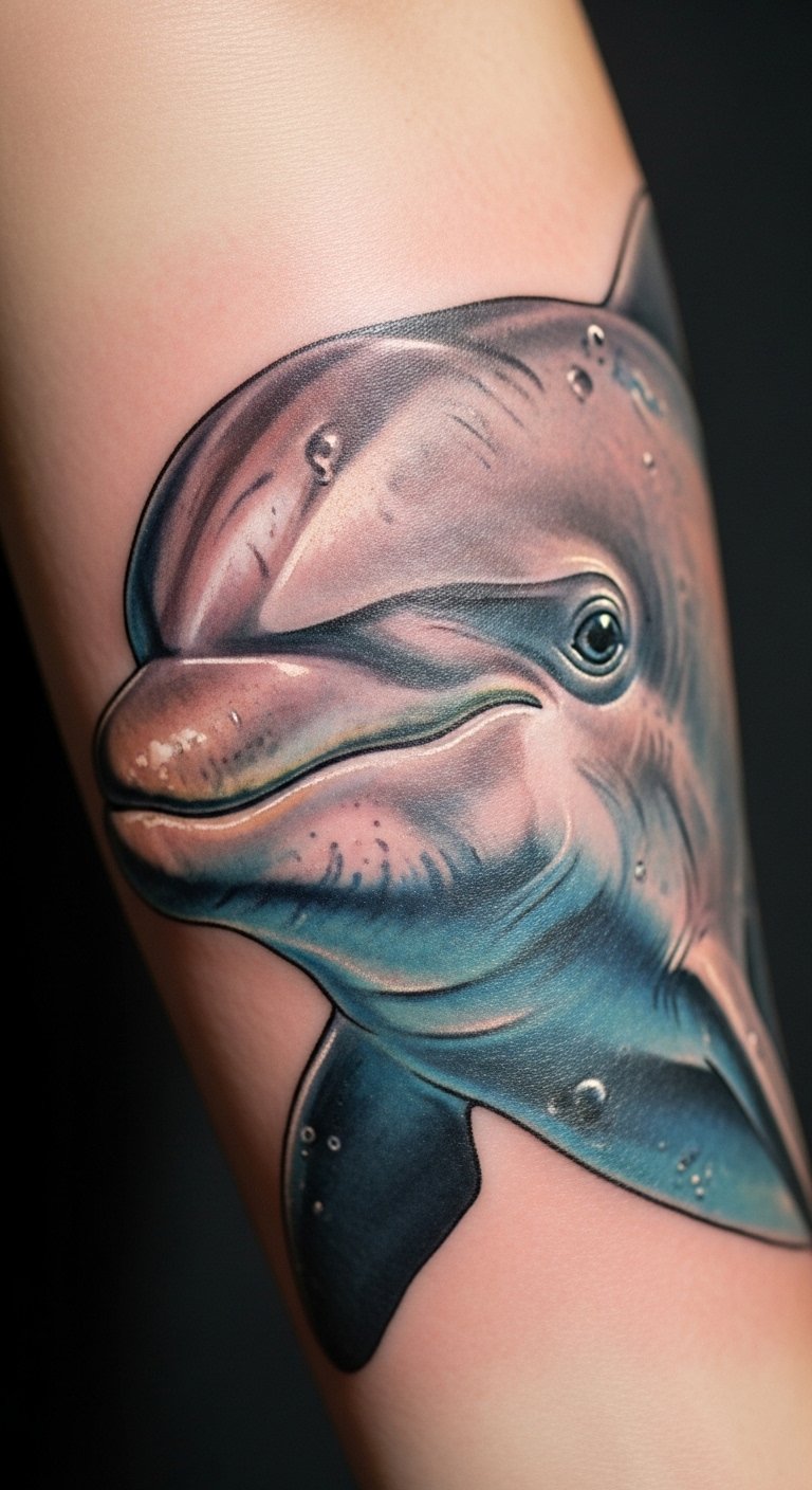 Realistic Dolphin Portrait Tattoos