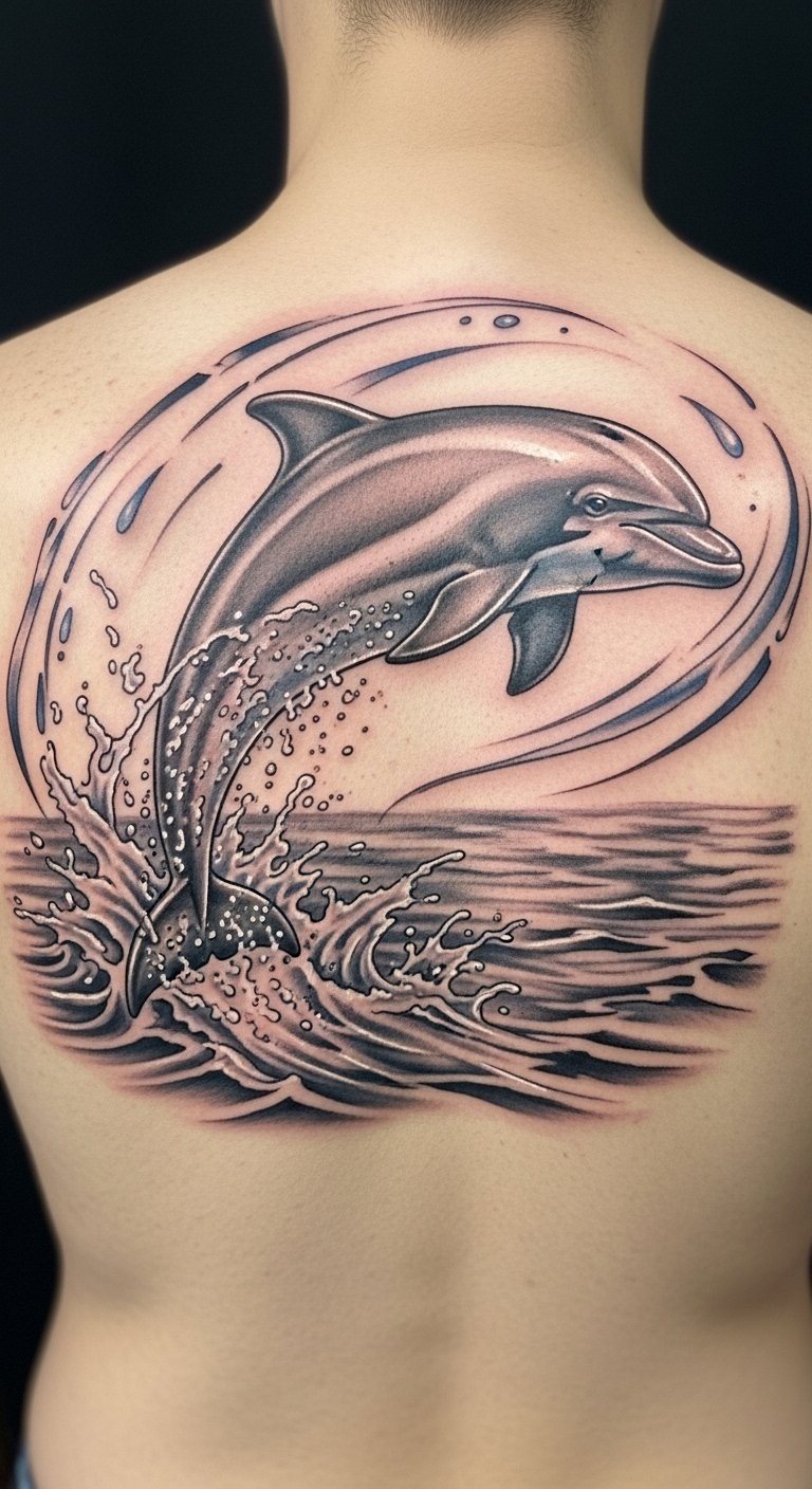 This tattoo concept symbolizes freedom and grace, capturing the essence of the dolphin as a creature of the sea.