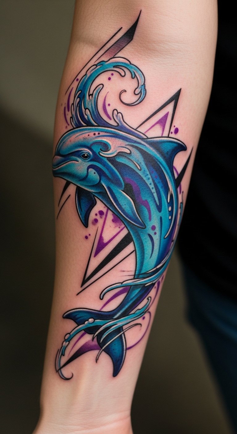 This artistic dolphin tattoo embodies freedom and individuality, serving as a powerful symbol of grace and exploration.