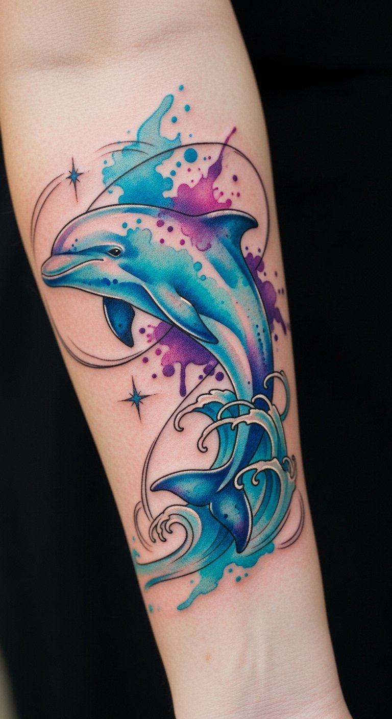 Watercolor Dolphin Tattoos