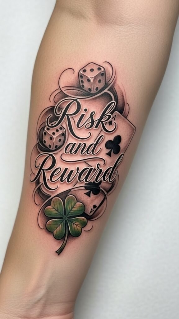 This tattoo symbolizes the intertwined nature of risk and fortune in gambling, capturing the essence of personal luck and the thrill of chance.