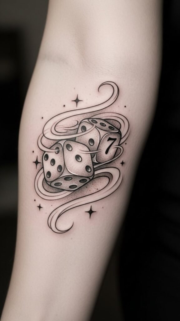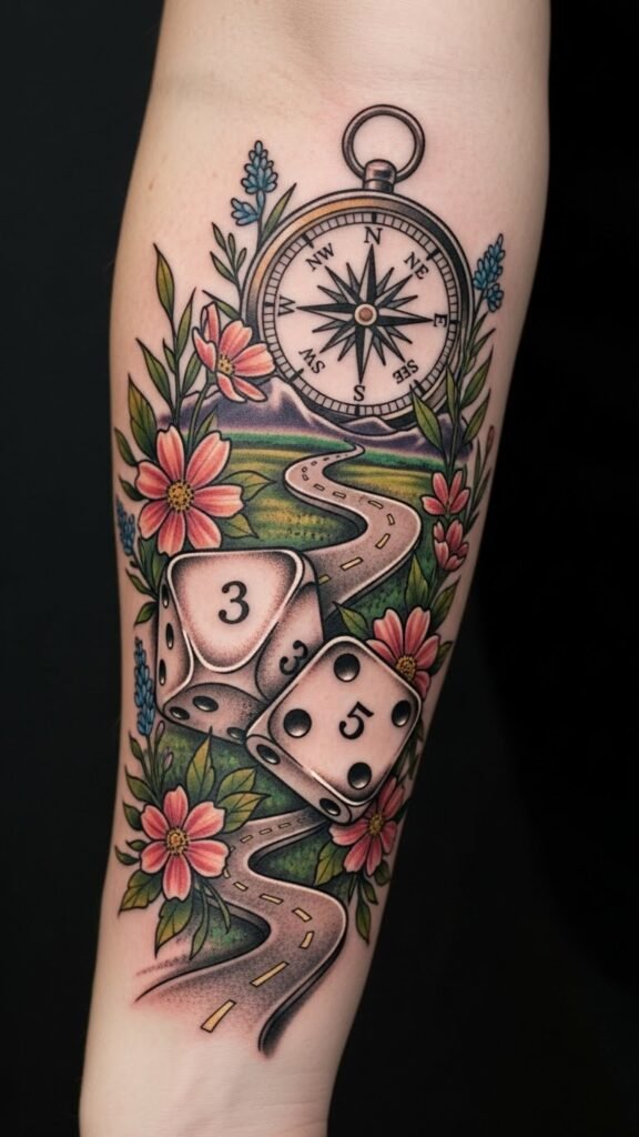 This tattoo embodies the thrill of chance and the excitement of life’s uncertainties. Placed on the forearm, it invites conversation and showcases a passion for adventure and risk-taking.