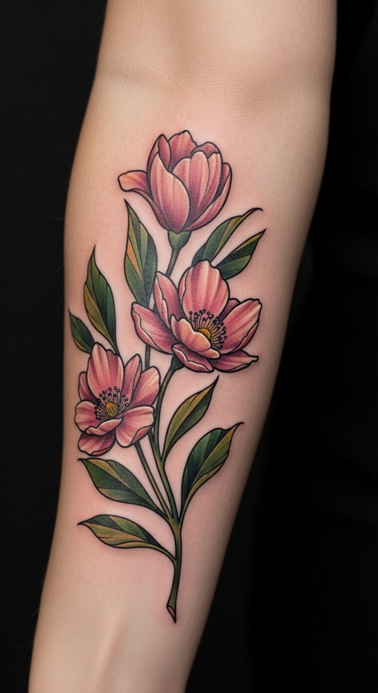 The floral tattoo on the forearm serves as a constant reminder of personal growth and the beauty of life’s journey.