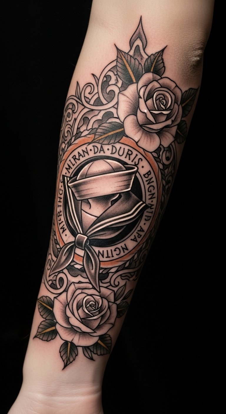 Positioned on the upper forearm, it serves as a constant reminder of personal strength and the journey of embracing both historical influences and contemporary artistry. The visible placement allows for open expression, inviting conversations about one’s heritage and the meaningful stories behind the ink.
