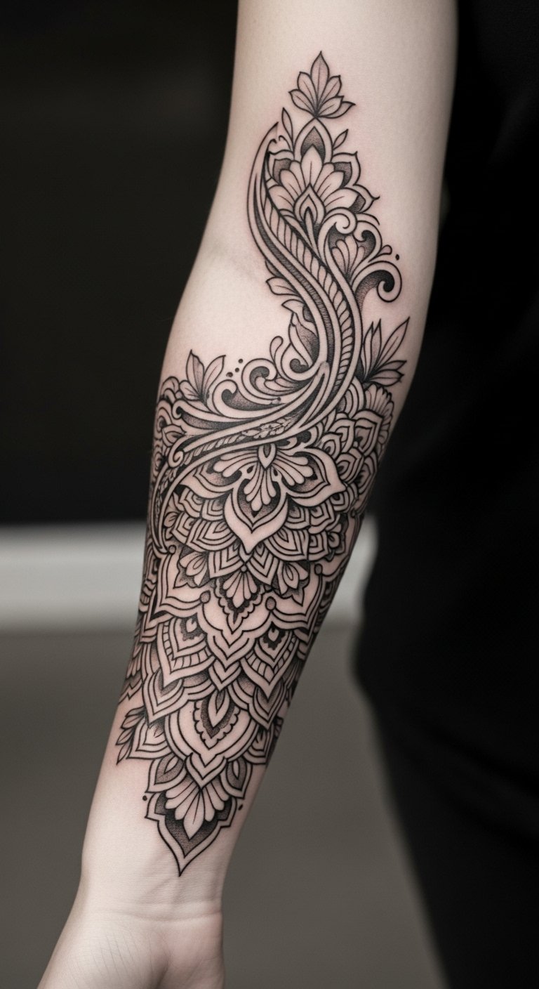 The intricate design reflects individuality and a deep connection to one’s inner self, serving as a constant reminder of the beauty in navigating life’s complexities.