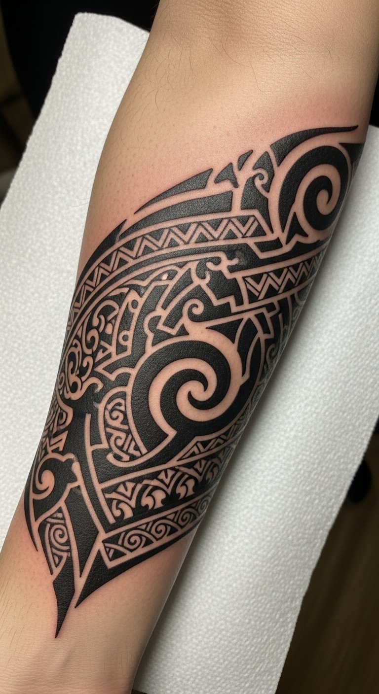 Placed on the forearm, this location allows for visibility and personal expression, serving as a reminder of one’s cultural roots and the strength derived from ancestral wisdom.