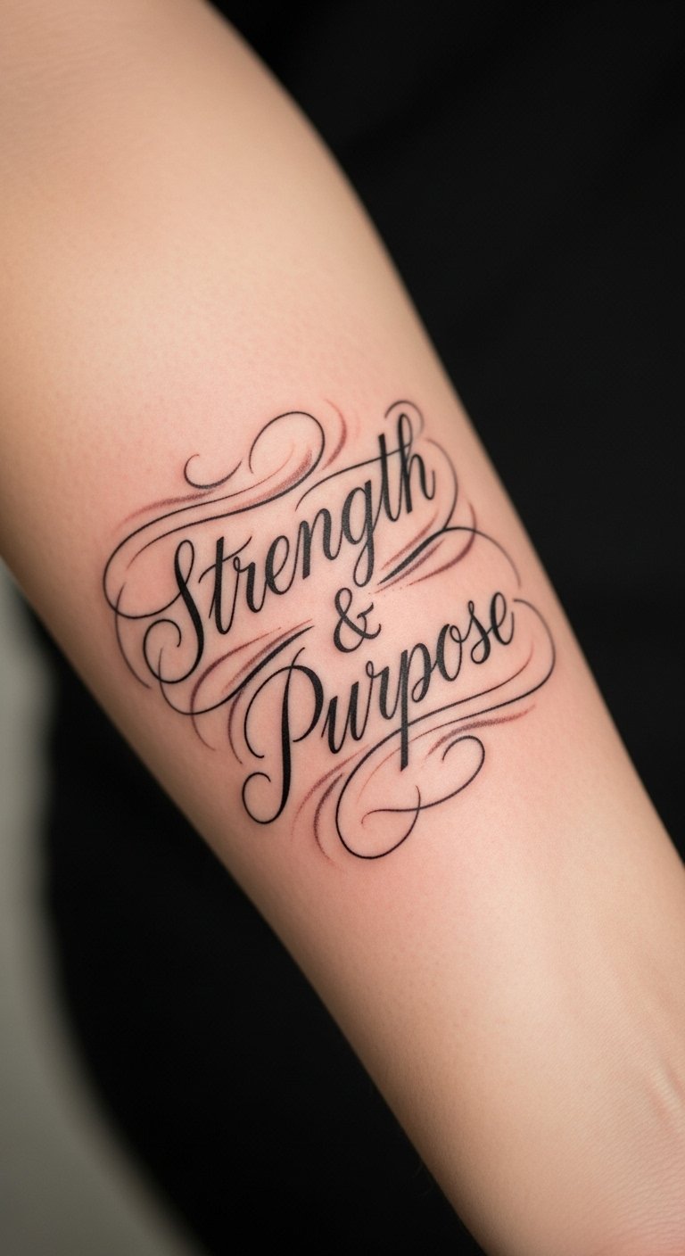 The choice of cursive script conveys elegance and fluidity, reflecting the wearer’s journey through life’s challenges.