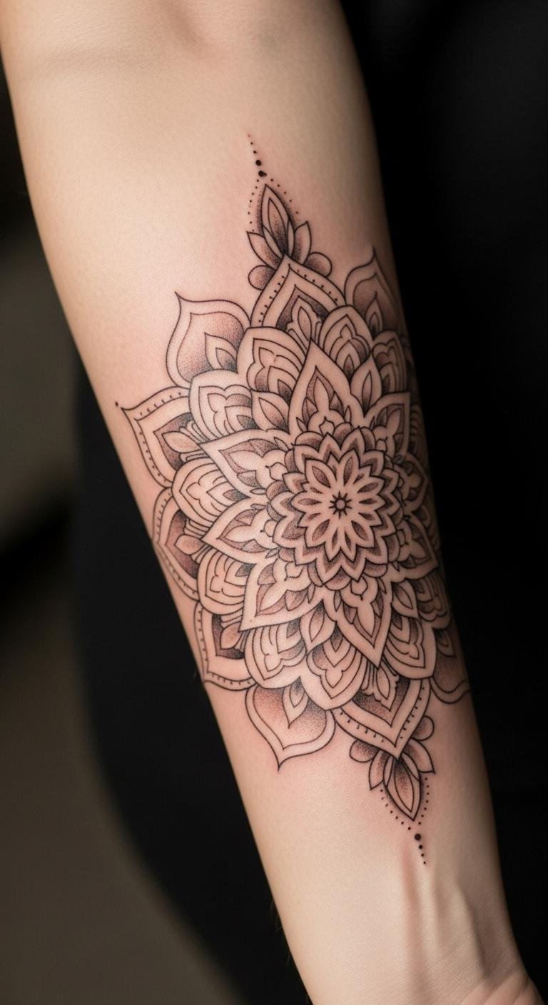 The intricate design evokes a sense of peace and connection, making it a meaningful choice for those seeking to express their individuality through body art.