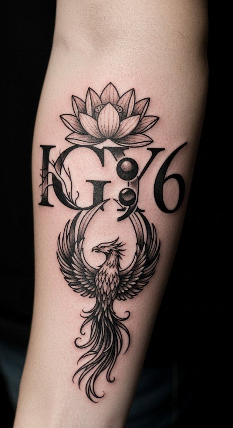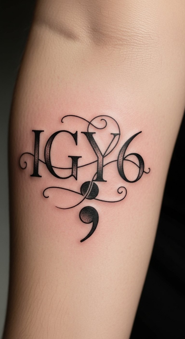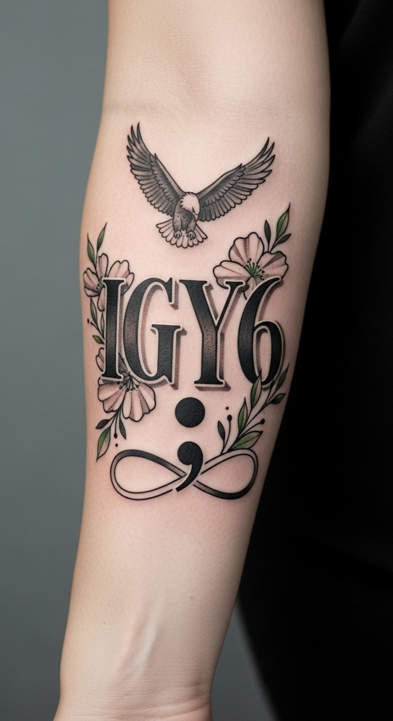 The “IGY6” tattoo with a semicolon symbolizes resilience and hope, representing an unwavering commitment to loyalty and support.