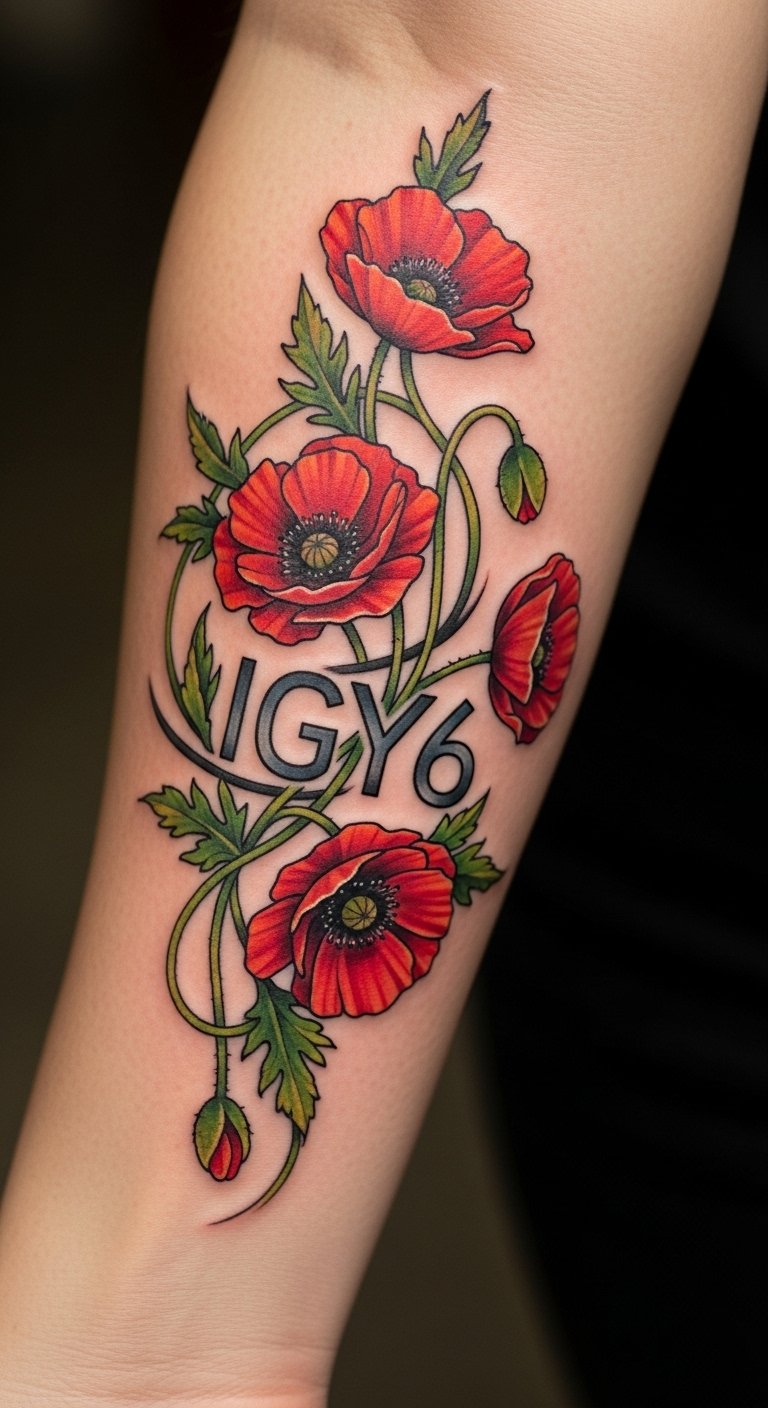 The vibrant poppy flowers symbolize sacrifices made for freedom, while the IGY6 mantra reinforces a message of solidarity and resilience.