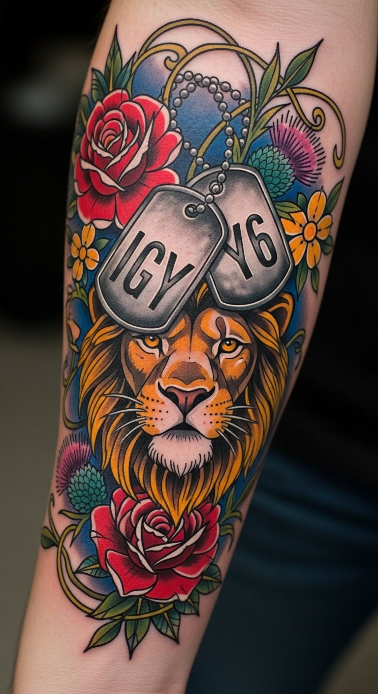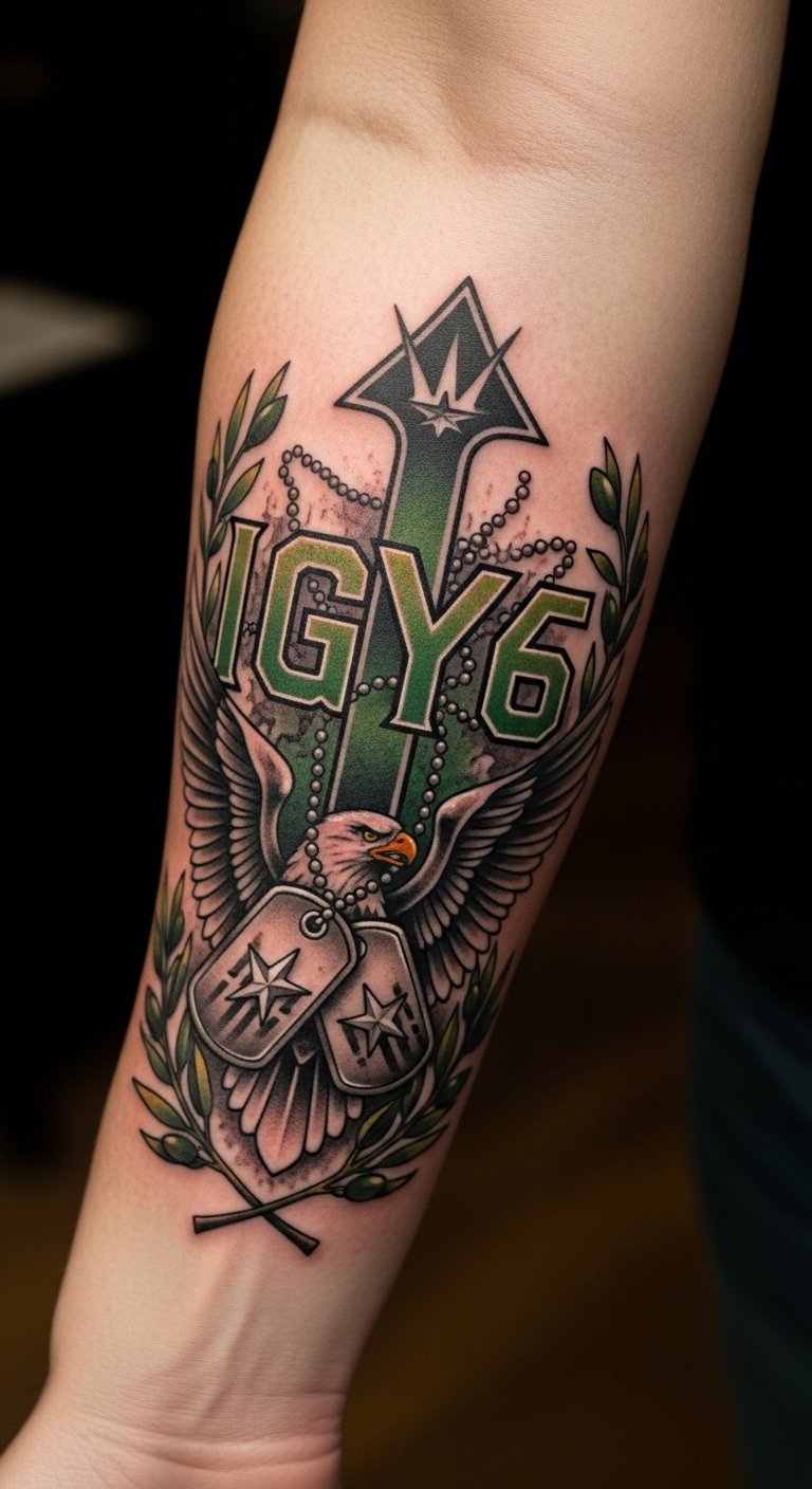 This tattoo design embodies the spirit of loyalty and sacrifice inherent in military culture.