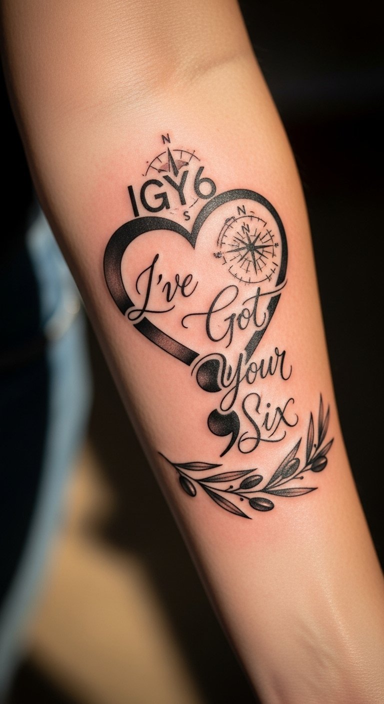 The combination of the heart motif with the IGY6 message encapsulates a powerful bond, reflecting both personal and military experiences. It represents resilience and the unbreakable ties that unite individuals, making it a meaningful expression of unwavering support.