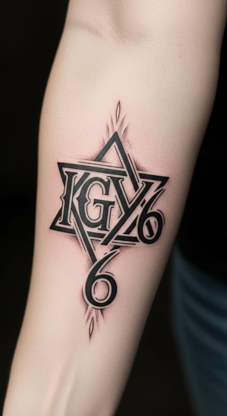 This tattoo beautifully integrates the powerful symbolism of IGY6 with the six-pointed star, embodying themes of loyalty, camaraderie, and protection.