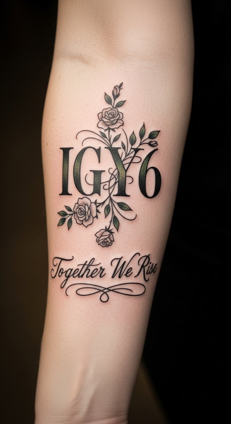 The tattoo’s placement on the forearm ensures it’s visible yet personal, allowing for moments of reflection and sharing. The IGY6 symbol represents unwavering loyalty, while the quote adds depth, transforming the ink into a personal mantra.