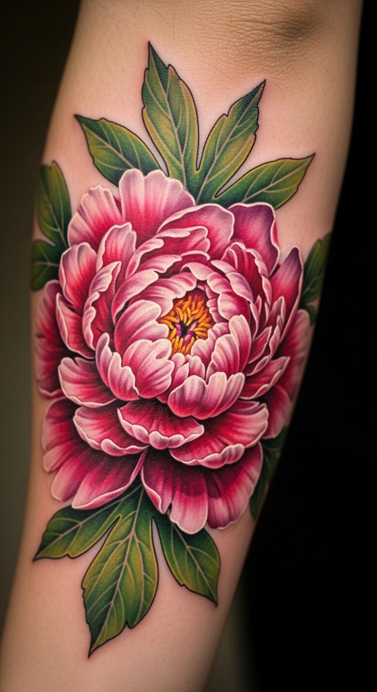 The peony tattoo symbolizes wealth and prosperity, making it an ideal choice for those seeking to embody abundance in their lives.