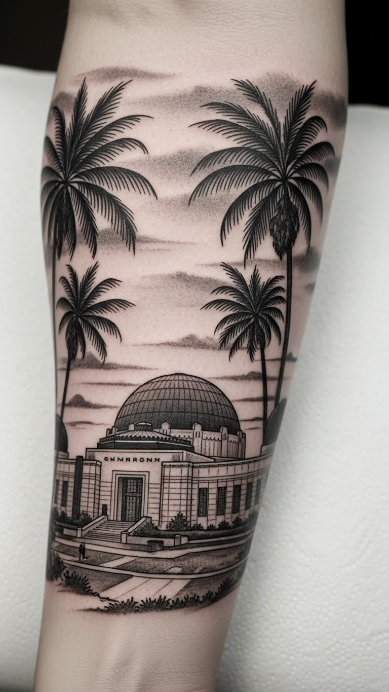 This tattoo symbolizes a deep connection to the spirit of Los Angeles and the allure of Hollywood.
