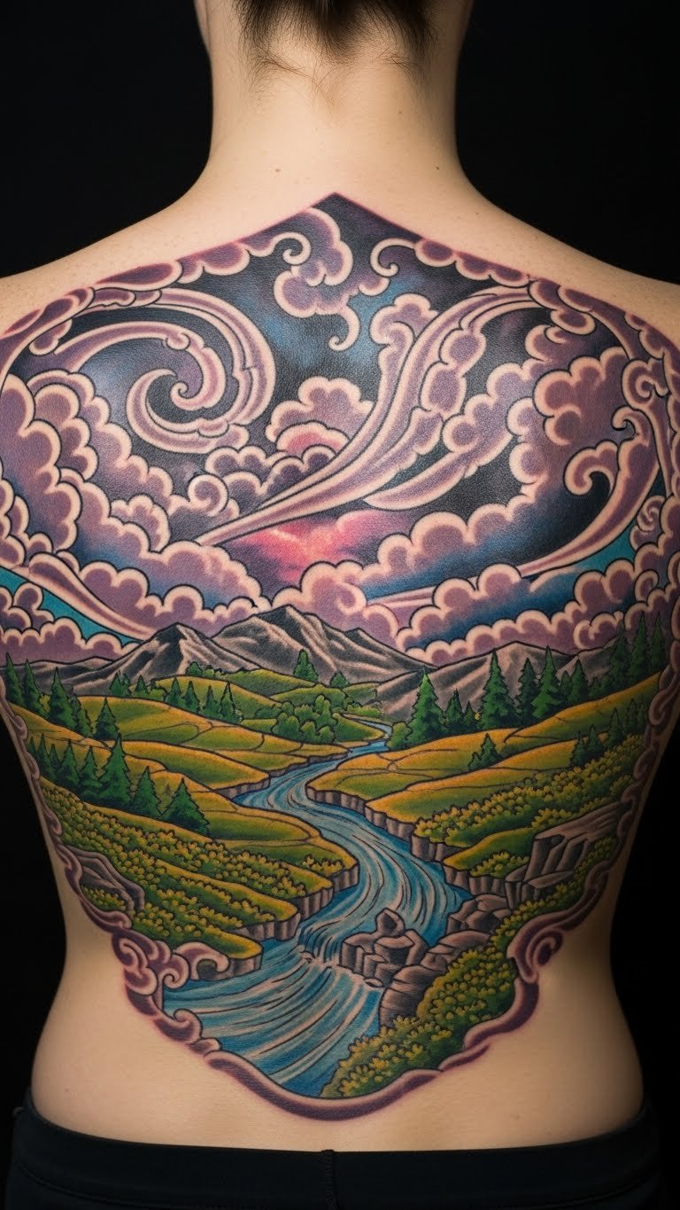 Placed on the upper back, this design allows for visibility and expression, making it a statement piece that reflects individuality and freedom.