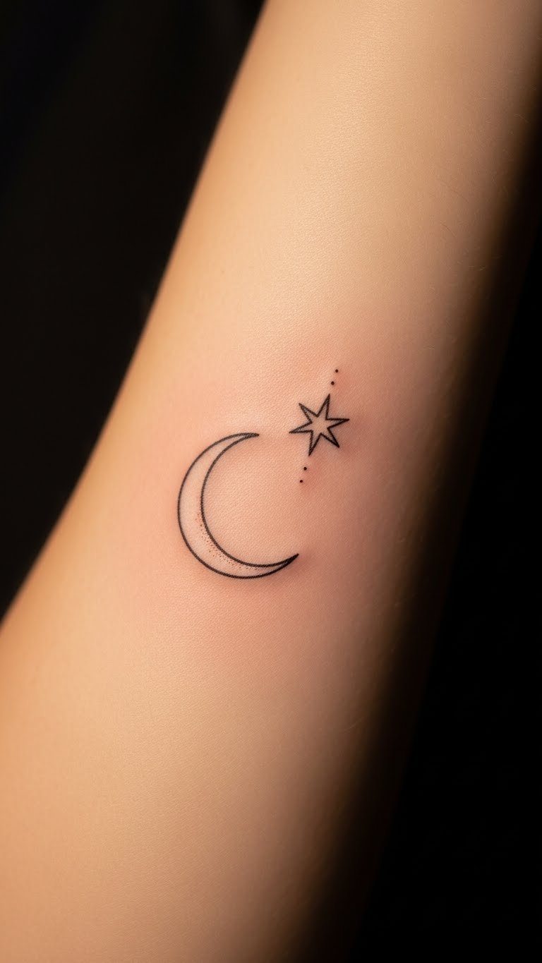 The crescent moon symbolizes intuition, dreams, and the cycles of life, while the star represents guidance and hope. Together, they create a powerful emblem of personal growth and aspiration.