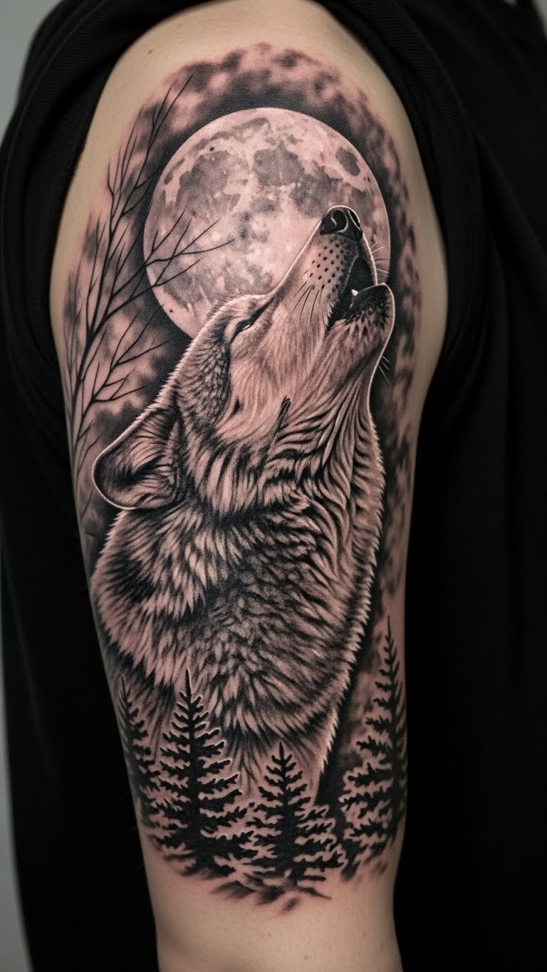 This tattoo symbolizes the spirit of independence and connection to nature, representing strength and resilience through the wolf’s majestic howl.