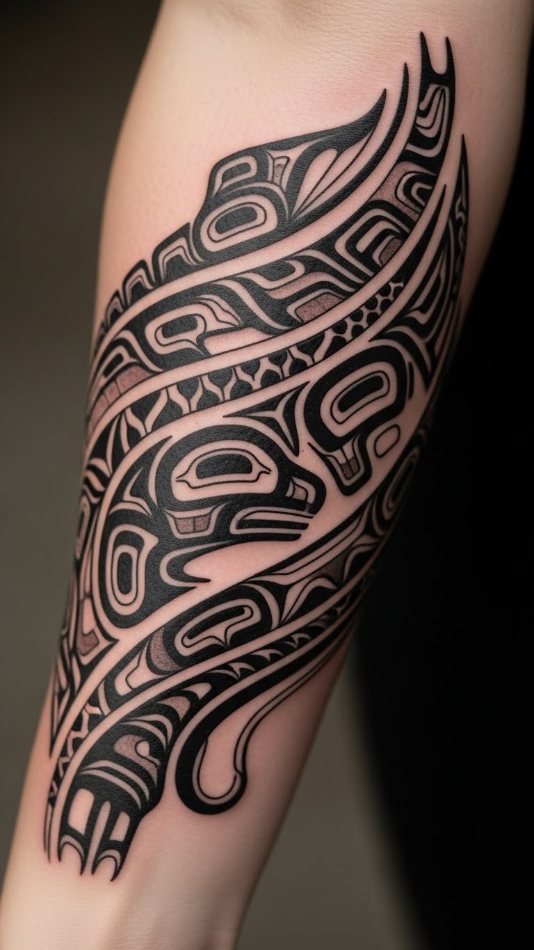 The tattoo symbolizes a deep respect for Indigenous cultures, reflecting stories and traditions that have been passed down through generations.